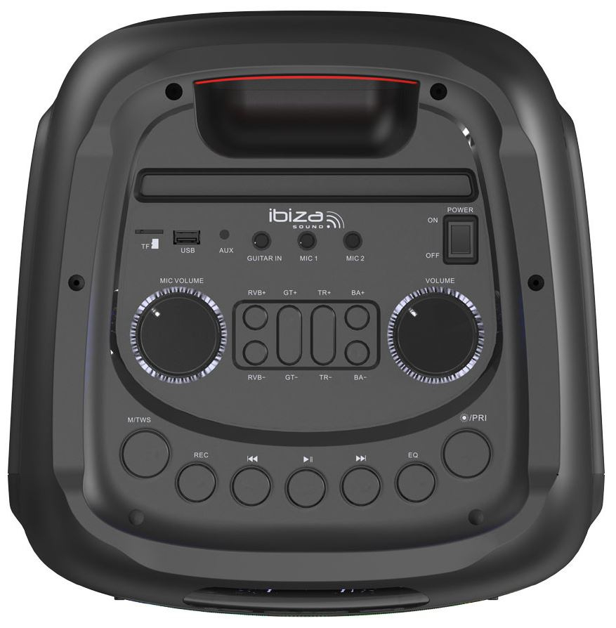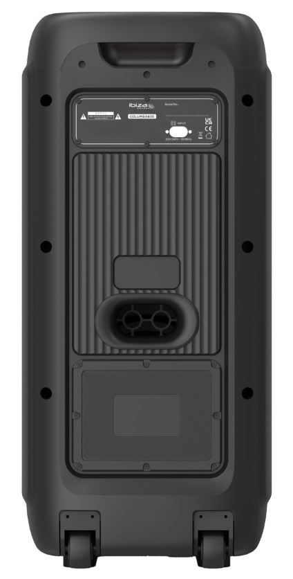 Enceinte lumineuse portable sur batterie Ibiza Sound COLUMBA800 équipé de 2x haut-parleurs de basses 20cm d'une puissance de 800W