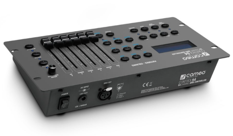 Contrôleur DMX 54 canaux, CONTROL 54, CAMEO. Pour piloter un maximum de 9 projecteurs ou groupes de projecteurs egalement compatible avec tous les projecteurs mélangeurs de couleurs RGB, RGBW, RGBWA et RGBWA+UV.