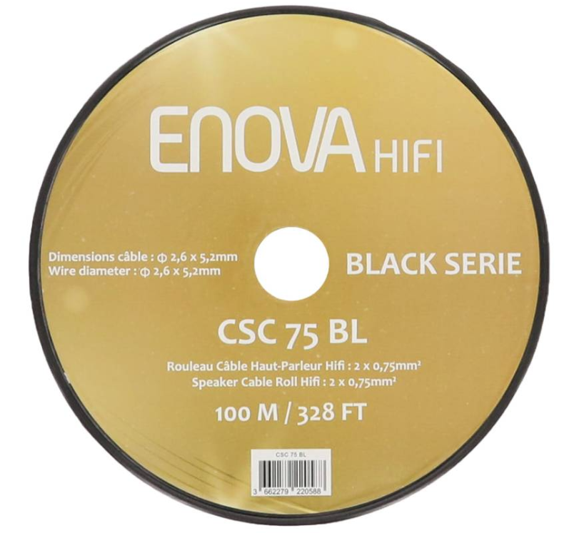Avec une bobine de 100 mètres, le câble CSC 75 BL d’Enova HiFi répond parfaitement aux besoins d’installations de grande envergure. Que ce soit pour relier plusieurs enceintes dans une pièce ou pour un système audio réparti, cette longueur offre une liberté totale de configuration.