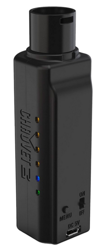 L’appareil se branche directement dans le port XLR d’une lumière pour transmettre sans fil DMX et signaux maître/esclave. Des indicateurs LED pratiques montrent visuellement le fonctionnement du canal sans fil. D-Fi XLR TX est conforme à la fcc/rtte.