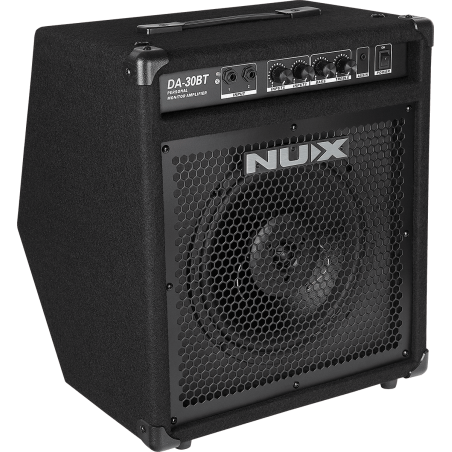 Le Nux DA-30BT est équipé d'un haut-parleur coaxial combinant un woofer de 10 pouces et un tweeter de 1 pouce, une conception qui permet une diffusion sonore équilibrée et claire sur l’ensemble du spectre de fréquences. Cette technologie garantit que les basses et les aigus sont traités de manière distincte mais harmonieuse, assurant un rendu sonore de haute qualité, idéal pour les batteries électroniques et autres instruments compatibles.