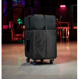 • Comprend une plateau à roulettes, une housse de protection pour le caisson de graves, deux housses de protection pour les satellites et une sangle d'arrimage