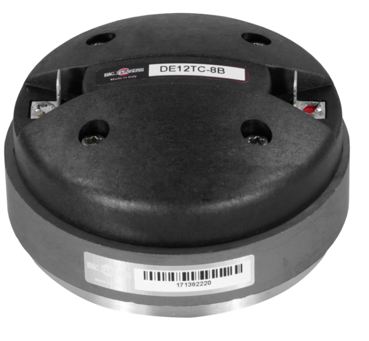 Le moteur DE12TC repose sur une architecture éprouvée : bobine mobile en aluminium de 36 mm pour une dissipation thermique rapide et un dôme en titane pour une restitution fidèle des aigus. L’ensemble fonctionne grâce à un circuit magnétique en ferrite générant 1,45 T, assurant une réponse rapide aux transitoires et une faible distorsion.
