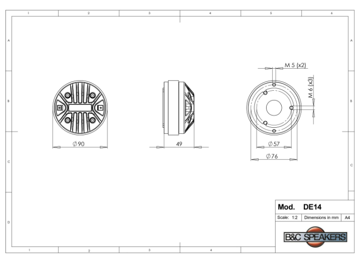 Grâce à ses dimensions standardisées et ses options de montage multiples, le moteur B&C Speakers DE14 8 Ohm est compatible avec une grande variété de pavillons. Son double perçage fileté M5 à 76 mm et M6 à 57 mm assure une fixation fiable, quelles que soient les contraintes mécaniques du système. Cette flexibilité facilite son intégration dans les enceintes de sonorisation professionnelle.
