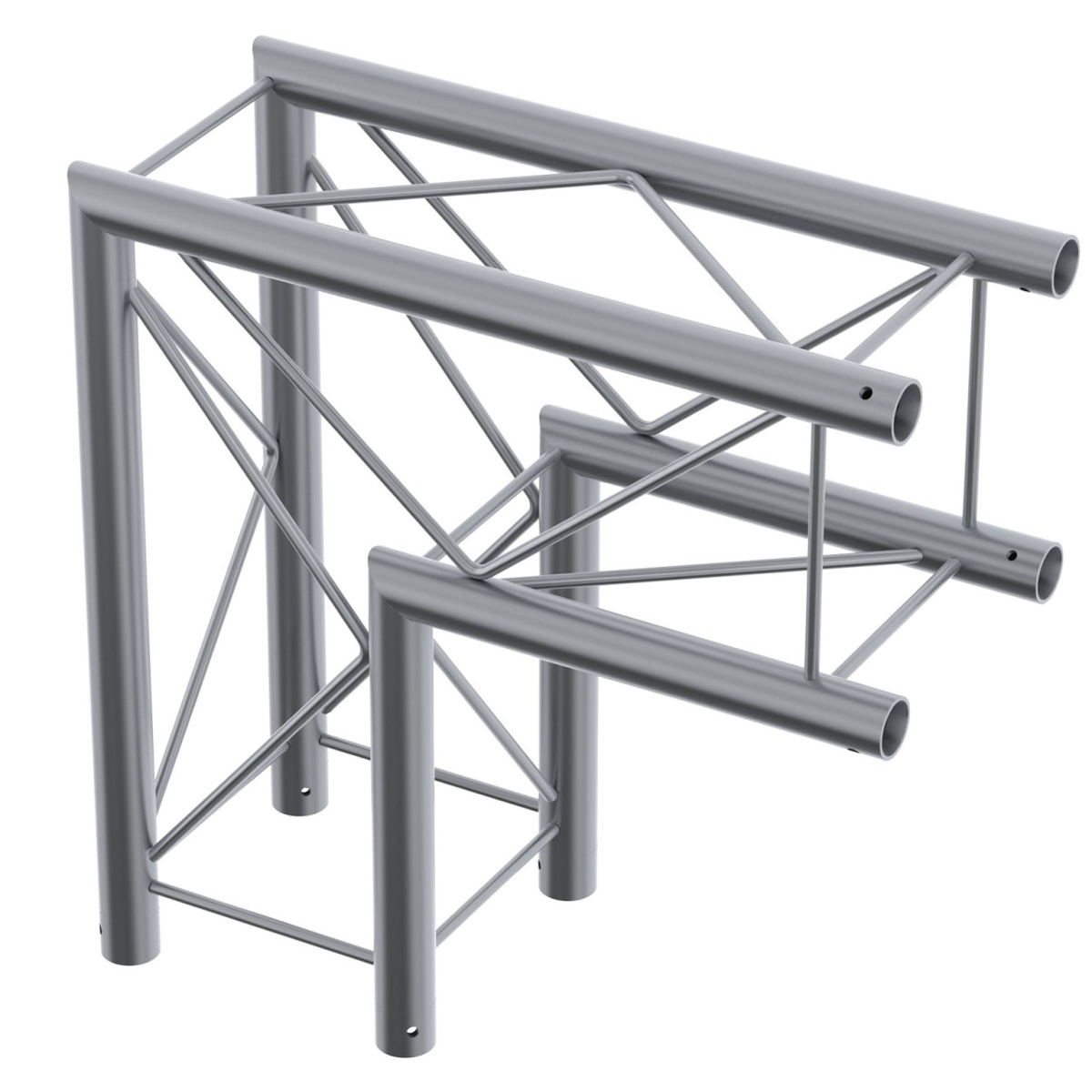 Le ConteStage DECO22Q-AG01 est une structure aluminium exceptionnelle. Avec un angle Quatro de 220 mm à 2 directions de 50 cm à 90°, elle est idéale pour l'installation en magasin, la construction de stands d'exposition ou la décoration. Fabriquée en alliage d’aluminium (EN AW 6082 T6) et répondant aux normes ISO DIN 4113 et TÜV, cette structure assure robustesse et durabilité. Dotée de tubes de 35 mm et d'un système d'assemblage par manchon à goupille conique et clavette, elle garantit une installation facile et une solidité inégalée.