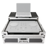 Cette workstation DJ intègre une plateforme laptop coulissante amovible, permettant d’installer rapidement un ordinateur portable au-dessus du contrôleur. Le système facilite l’accès à l’écran et optimise l’ergonomie lors des performances live. Deux sangles assurent le maintien du laptop durant le transport.
