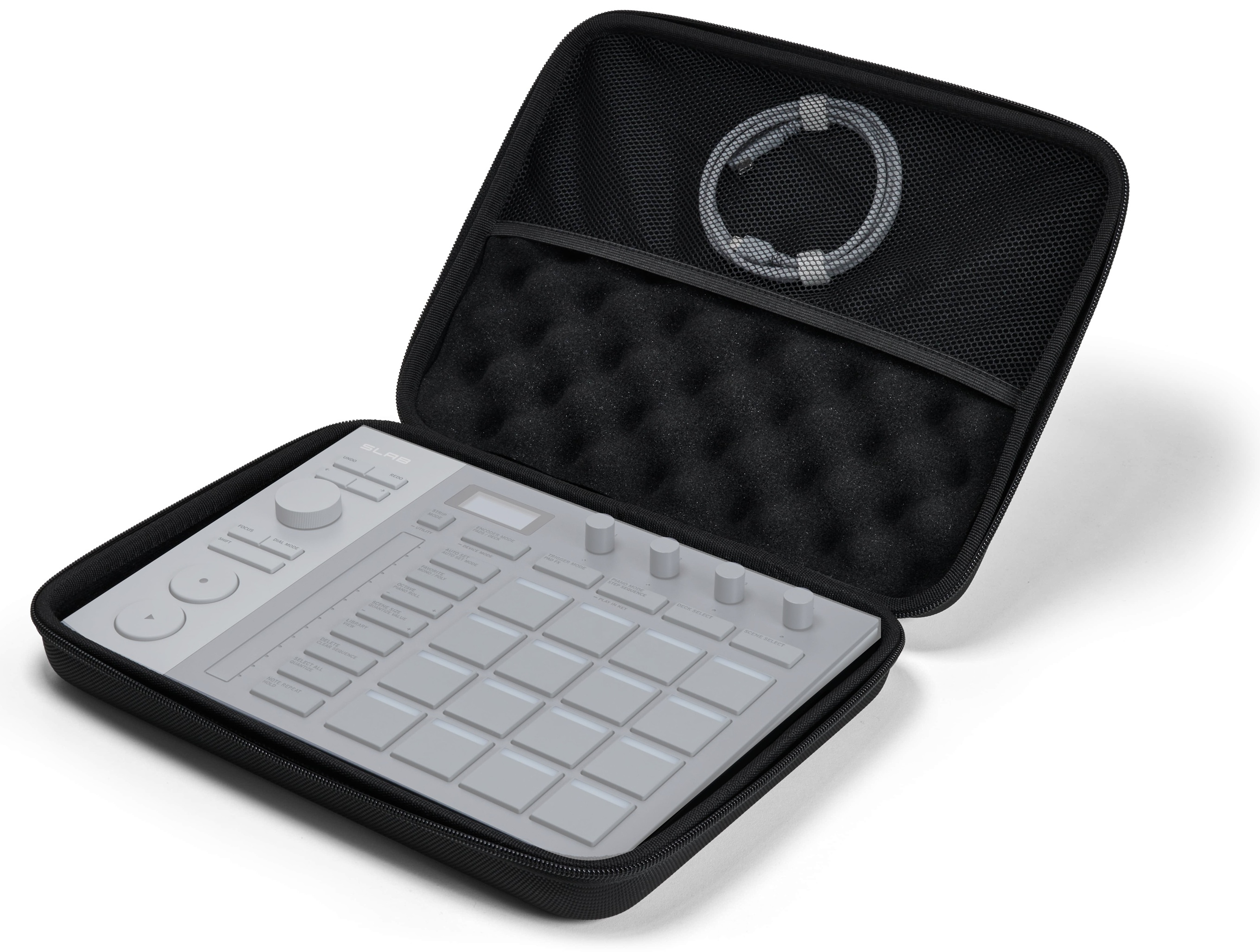 Le sac DJC-SLAB est spécifiquement conçu pour accueillir le contrôleur MIDI SLAB de la marque AlphaTheta. Ses dimensions intérieures de 29 × 21,5 × 5 cm offrent un maintien optimal et sécurisé de ce modèle précis. Il n’est pas recommandé pour d’autres contrôleurs de taille différente.