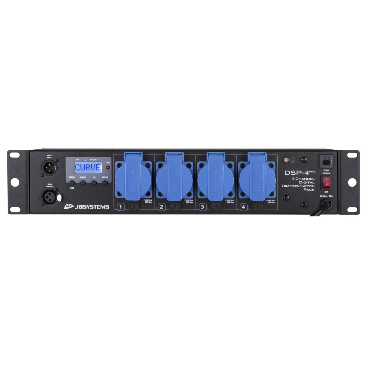 Le Jb Systems DSP-4 MK2 /F est un pack dimmer/switch DMX multifonctionnel, conçu pour une gestion précise de l’éclairage. Doté de 4 prises Schuko françaises, il prend en charge des charges LED dès 10W par canal et offre une puissance totale de 3450W/15A. Son format rack 19”, sa fixation murale ou en pont ALU en font un choix polyvalent pour toutes les installations. Avec son écran LED, ses entrées/sorties DMX verrouillables et ses fusibles individuels, il garantit une gestion fiable et intuitive, idéale pour les professionnels exigeants.