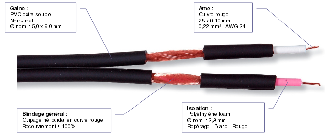 Câble audio asymétriques - 0,22 mm² Haut Qualité Prix au mètre linéaire Pour câblage type RCA / RCA