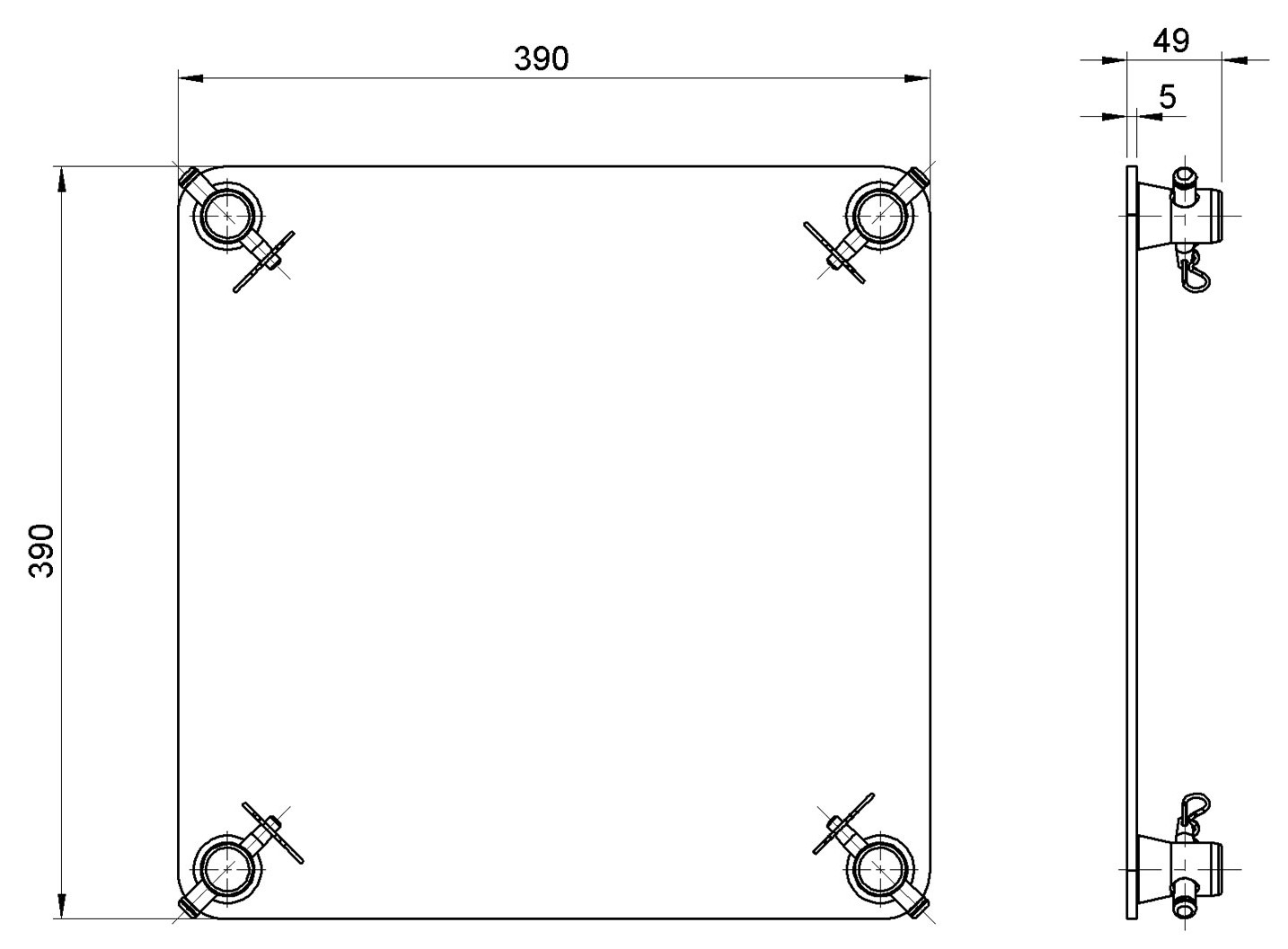Caractéristiques Embase au sol 400×400 mm pour structures QUATRO39 EMQUA39-B1