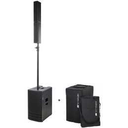 Le système est livré avec une housse de transport pour le subwoofer et un sac pour les satellites. Un adaptateur de montage sur pédale de 35 mm et deux câbles Speakon de 7 m sont inclus.