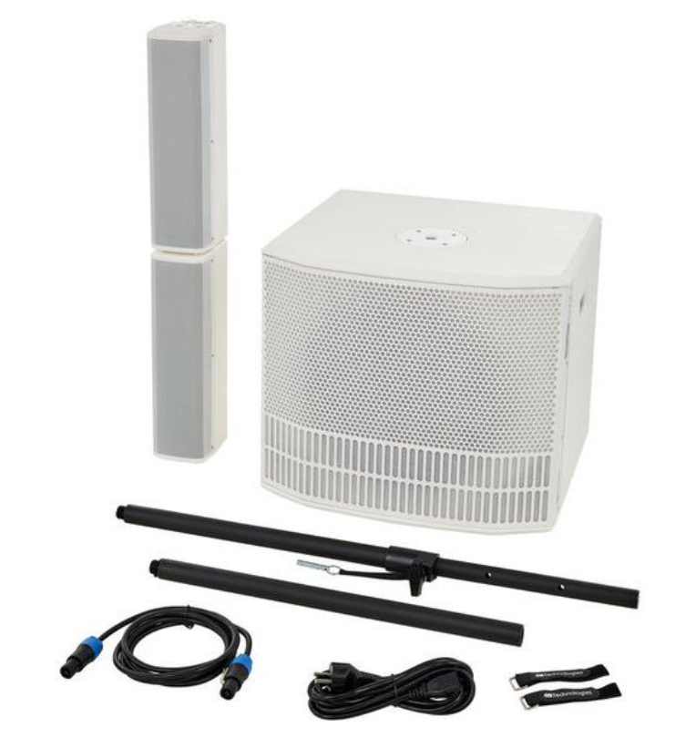 Avec un caisson de basses 12 pouces et des satellites comprenant huit haut-parleurs de 3 pouces, ce système fournit une restitution sonore équilibrée sur tout le spectre audio. L’amplification numérique Digipro G3 de 1000 watts garantit puissance, efficacité énergétique et fiabilité, même dans des environnements exigeants.