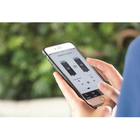 L'Escape P9 Noir est conçu pour offrir une expérience utilisateur optimale. Son application sur mesure pour iOS® et Android™ permet une interaction facile, tandis que le mode Twin offre la possibilité de jumeler deux enceintes pour une expérience stéréo immersive.
