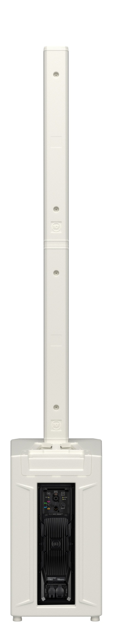 La structure de l’enceinte intègre une grille en acier et un système de refroidissement par convection qui augmente sa fiabilité. Ce design épuré, décliné ici en blanc, s’intègre facilement à des environnements variés (scènes, mariages, corporate, DJ sets).