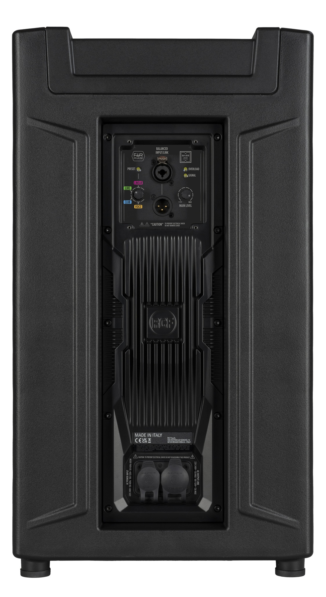 Les connecteurs PowerCON TRUE1 assurent une alimentation secteur sécurisée avec entrée et sortie en chaînage possible. Les entrées combo XLR/Jack permettent la connexion directe à une table de mixage ou à un micro. Un preset DSP est sélectionnable pour chaque type d’usage (musique live, DJ, voix), facilitant la configuration sur le terrain. Une solution optimale pour les utilisateurs autonomes ou les techniciens en installation rapide.