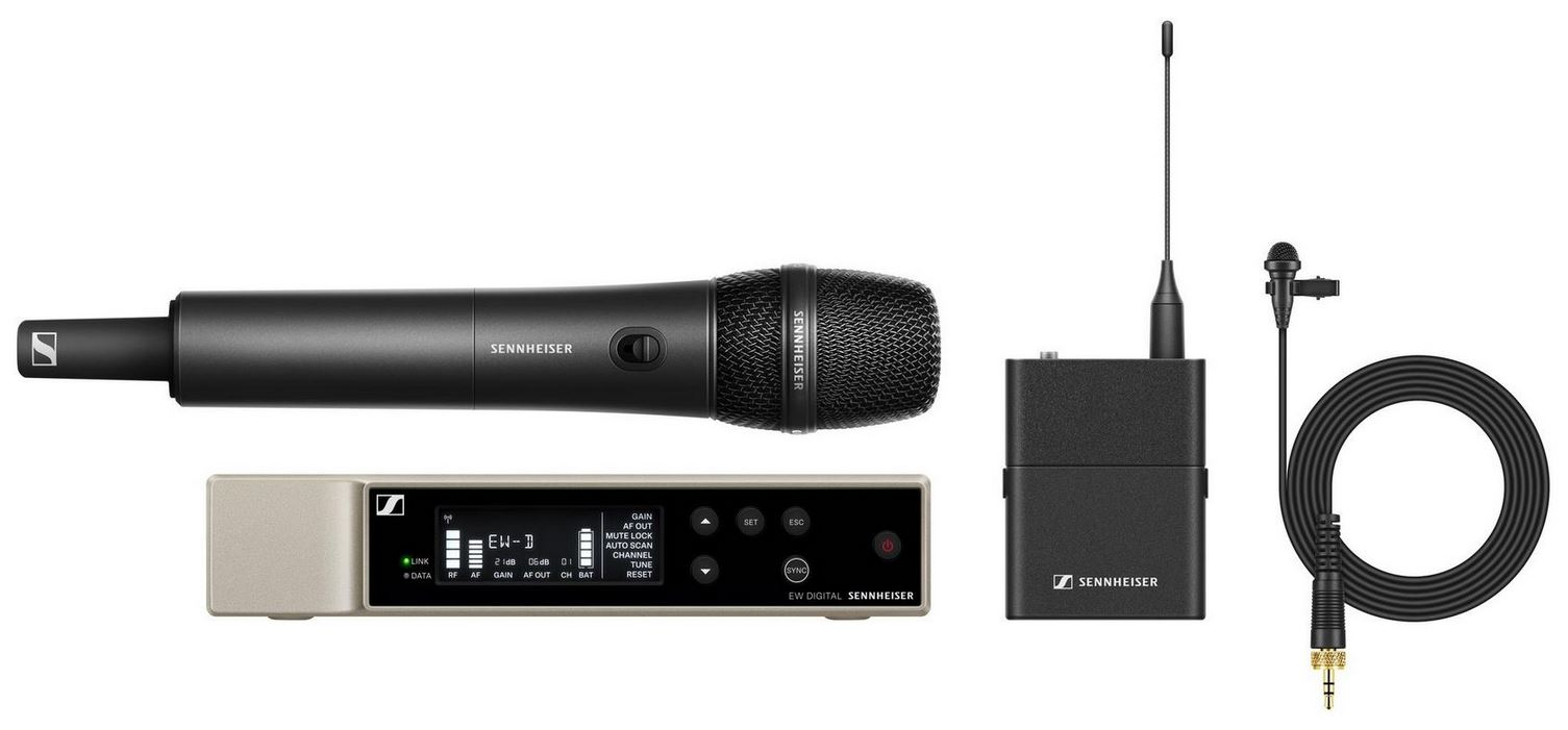 Le kit EW-D ME2/835-S SET associe deux types de microphones : un micro-cravate ME 2 omnidirectionnel, discret et adapté aux présentations, et une tête MMD 835 cardioïde montée sur émetteur main, idéale pour la scène ou l’animation.