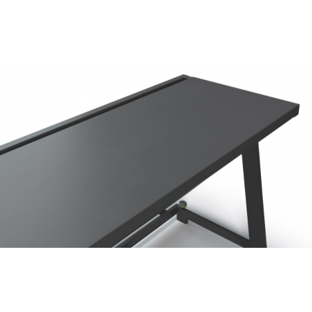 Les pieds de nivellement fournissent une plus grande stabilité compensant toute irrégularité du sol, et la traverse adaptable renforce sensiblement la table.