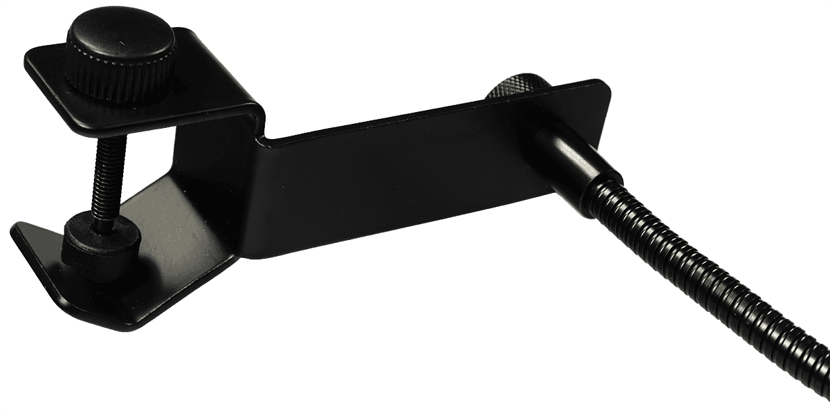 L’installation se fait par fixation rapide grâce à la pince intégrée. Il suffit de clipser le support sur la tige du pied de micro, puis d’orienter le filtre face à la capsule. Le réglage se fait manuellement, sans visserie, pour un ajustement rapide.