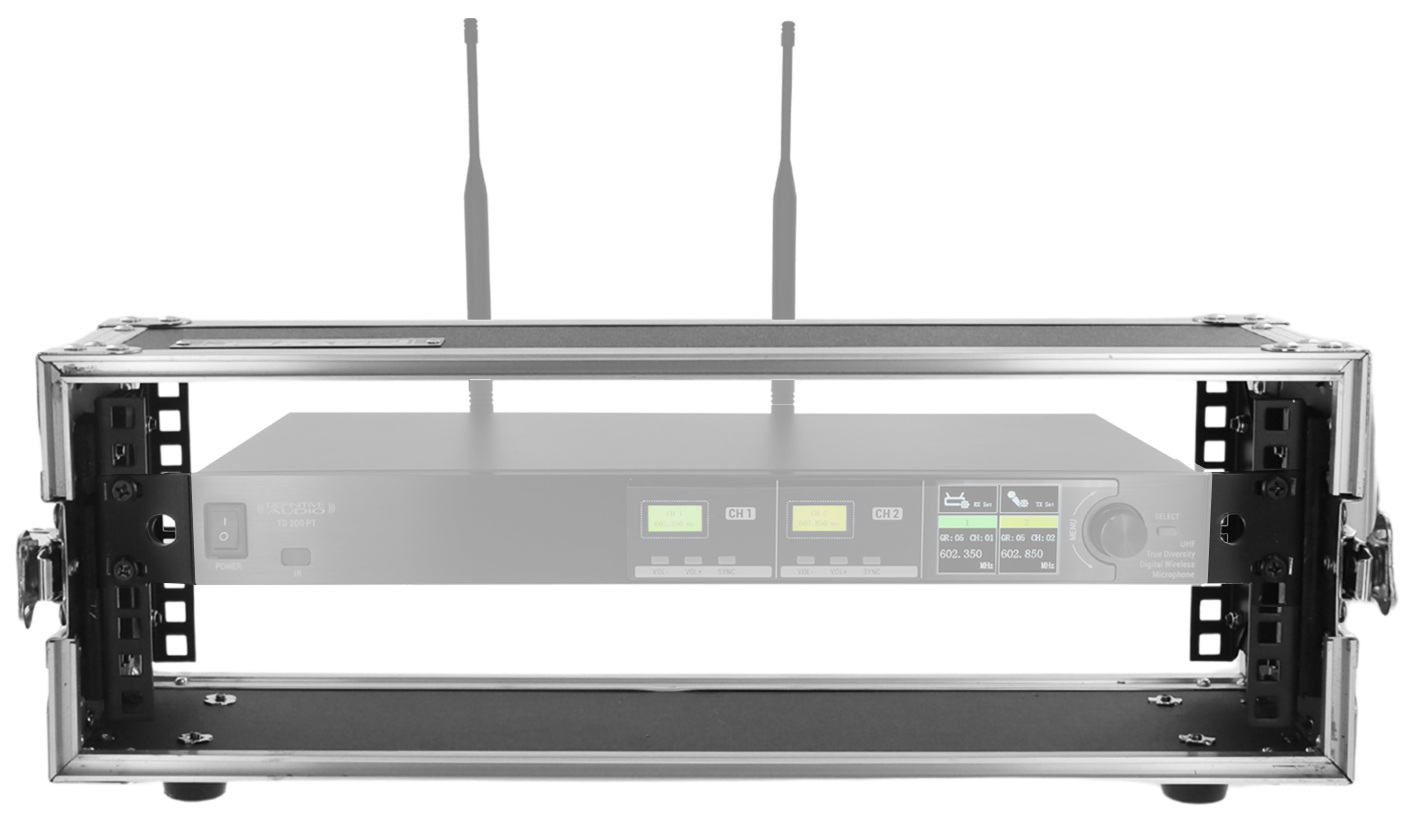 Le Power Acoustics FCE 3 UHFMIC est prévu pour laisser les récepteurs installés en permanence. Les capots avant et arrière se retirent facilement, permettant l’utilisation directe du matériel sur site tout en conservant une protection optimale pendant le transport.