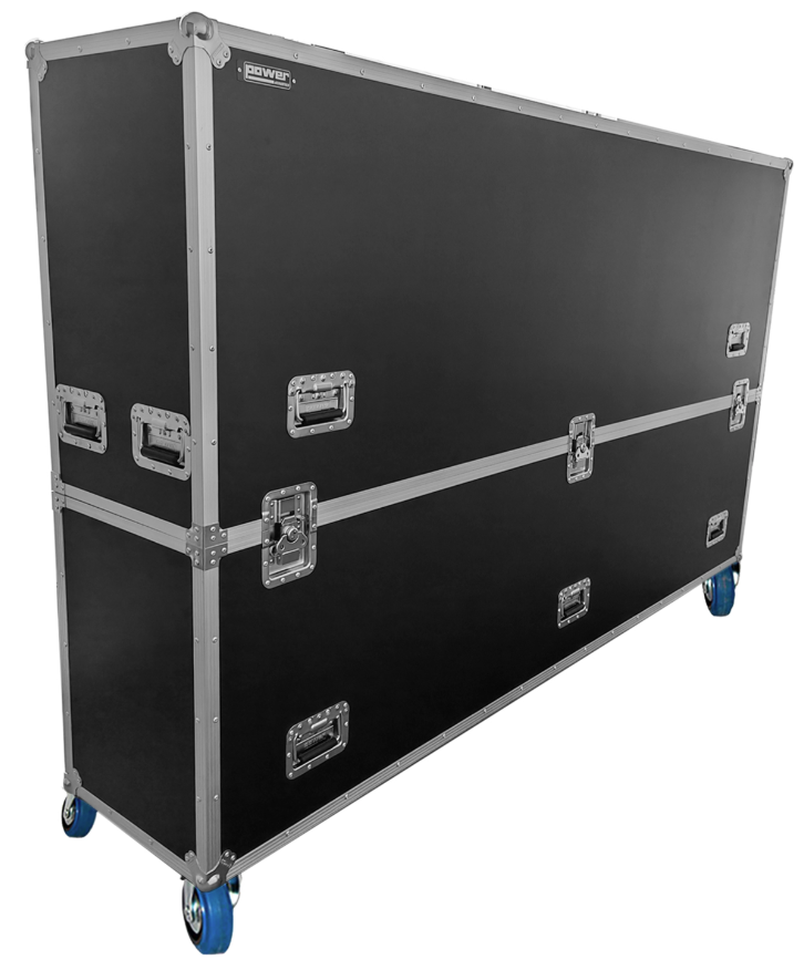Ce flight case est compatible avec les écrans plats LED ou plasma jusqu’à 100 pouces, avec une largeur maximale de 2240 mm. Il convient aux écrans professionnels utilisés en événementiel, audiovisuel ou installation fixe.