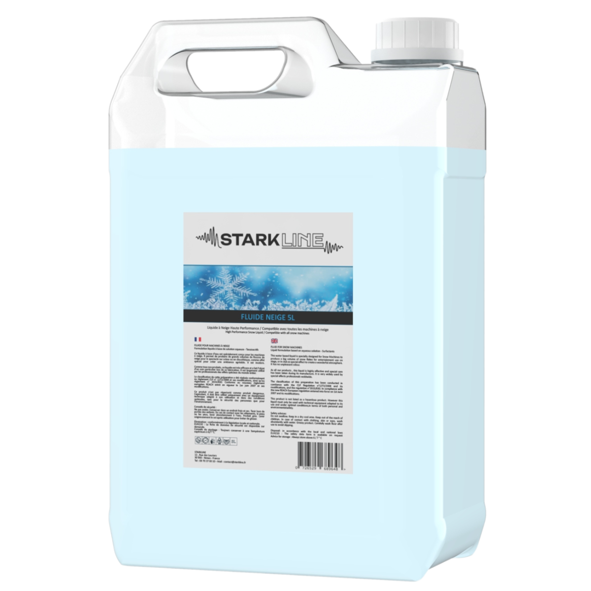 Le StarkLine Fluide Neige 5L est un liquide machine à neige conçu pour une performance optimale avec toutes les machines à neige. Prêt à l'emploi, ce fluide neutre et sans odeur génère une neige dense et stable. Biodégradable et purifié selon un processus industriel strict, il assure sécurité, confort et efficacité lors de vos événements. Conditionné en bidon de 5 litres avec bouchon inviolable.