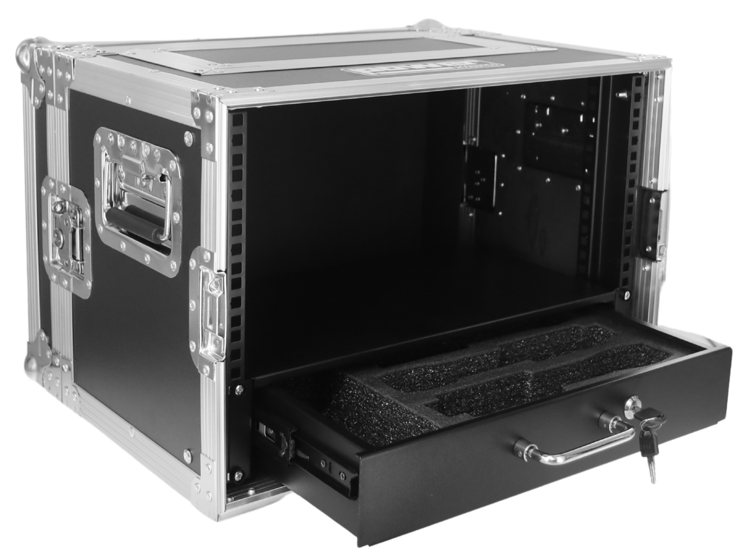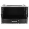 Le bouton-poussoir apporte une ouverture simple, utile quand vous travaillez en montage rapide. En pratique, vous gagnez du temps au moment de déployer le système, tout en conservant un stockage sécurisé pendant le transport. Le tiroir réduit aussi les manipulations autour du rack, ce qui diminue les risques de chutes d’accessoires et de dommages sur les connectiques.