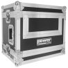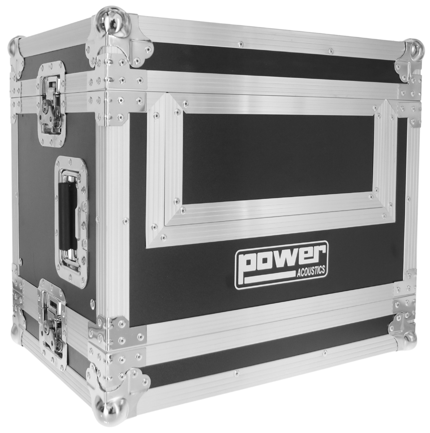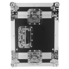 Le capot avant amovible, verrouillé par des fermetures papillon, facilite l’exploitation sur scène ou en régie. L’ouverture est rapide, l’accès aux récepteurs est direct et le flight case peut rester en place pendant l’utilisation. La poignée encastrée latérale de type papillon améliore la prise en main, ce qui aide lors du chargement, du transport en véhicule et du positionnement sur un chariot.
