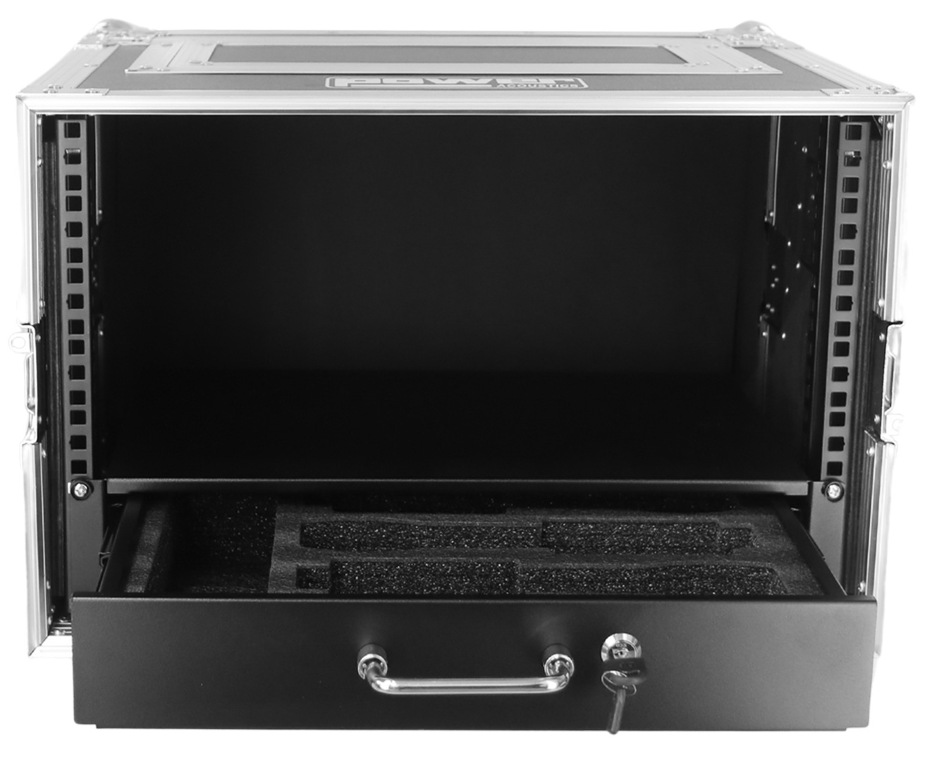 La différence principale vient du tiroir intégré du Power Acoustics FT HF MIC 5U. Un rack 5U classique sans tiroir impose souvent un rangement séparé pour les micros, antennes, bodypacks et accessoires, ce qui multiplie les sacs et les risques d’oubli. Ici, le tiroir au bas du rack centralise l’ensemble, avec un accès par bouton-poussoir. Le capot avant amovible à fermetures papillon reste comparable à d’autres flight cases. En contrepartie, le tiroir ajoute une fonctionnalité qui peut améliorer l’organisation sur le terrain, un point régulièrement recherché par les utilisateurs suivis en conseil chez Energyson.