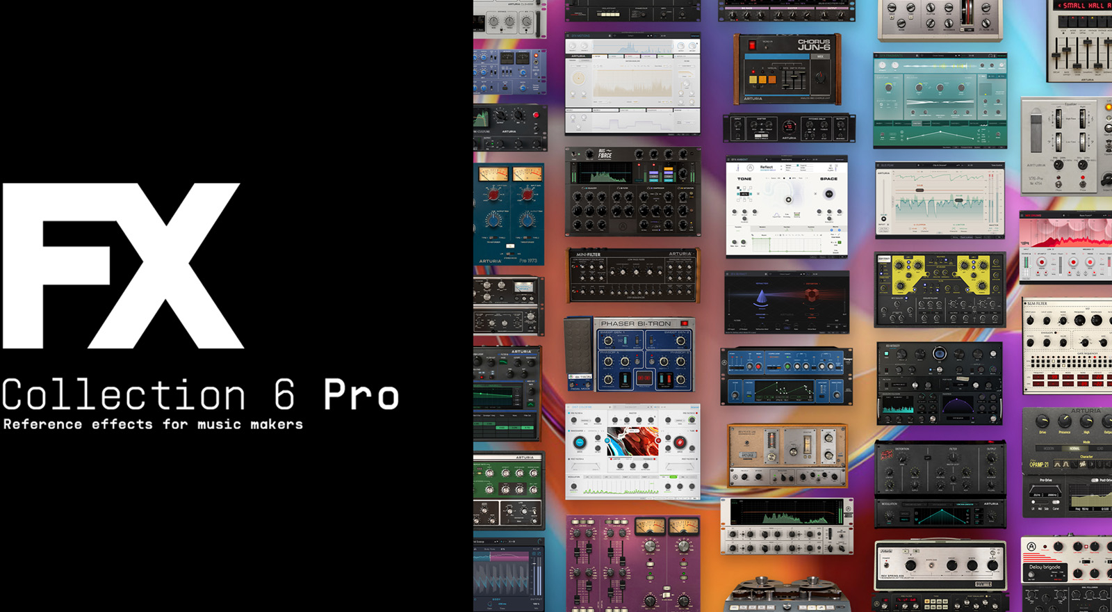 Le Arturia FX Collection 6 Pro est une suite d’effets audio conçue pour couvrir tout le workflow, du sound design au mix-bus et aux finitions de type mastering. Elle réunit 39 effets premium combinant un double ADN : des émulations studio au caractère vintage et des processeurs modernes pour transformer, texturer et animer vos sources. Utilisable dans n’importe quel DAW, la collection existe en VST, VST3, AU et AAX, avec un mode standalone et une compatibilité NKS en environnement 64 bits. Les interfaces haute résolution, les tutoriels intégrés et plus de mille presets commentés accélèrent la prise en main. Idéale pour voix, batterie, synthés, piano ou samples, elle apporte espace, dynamique, tonalité, couleur analogique et contrôle précis des transitoires.