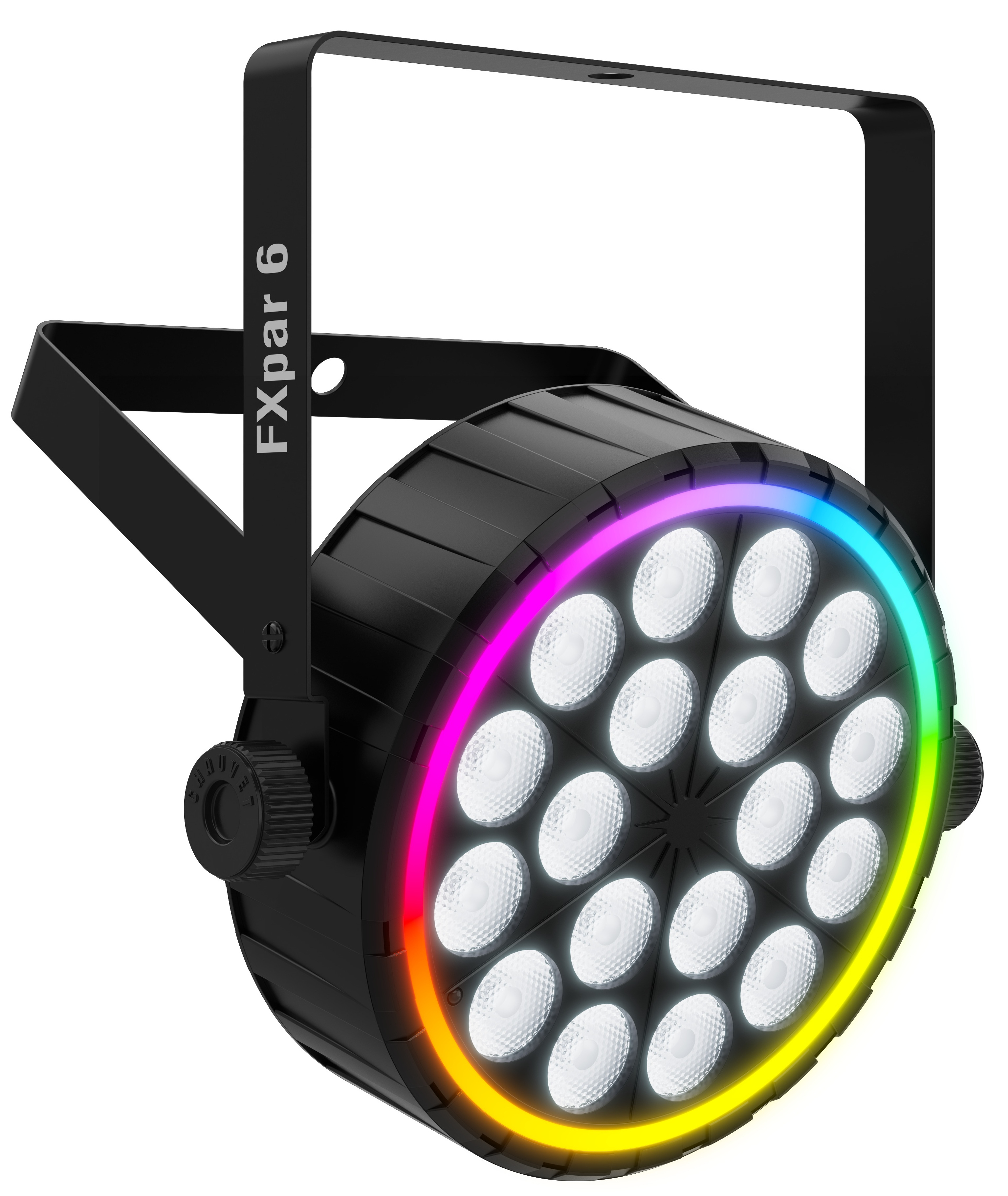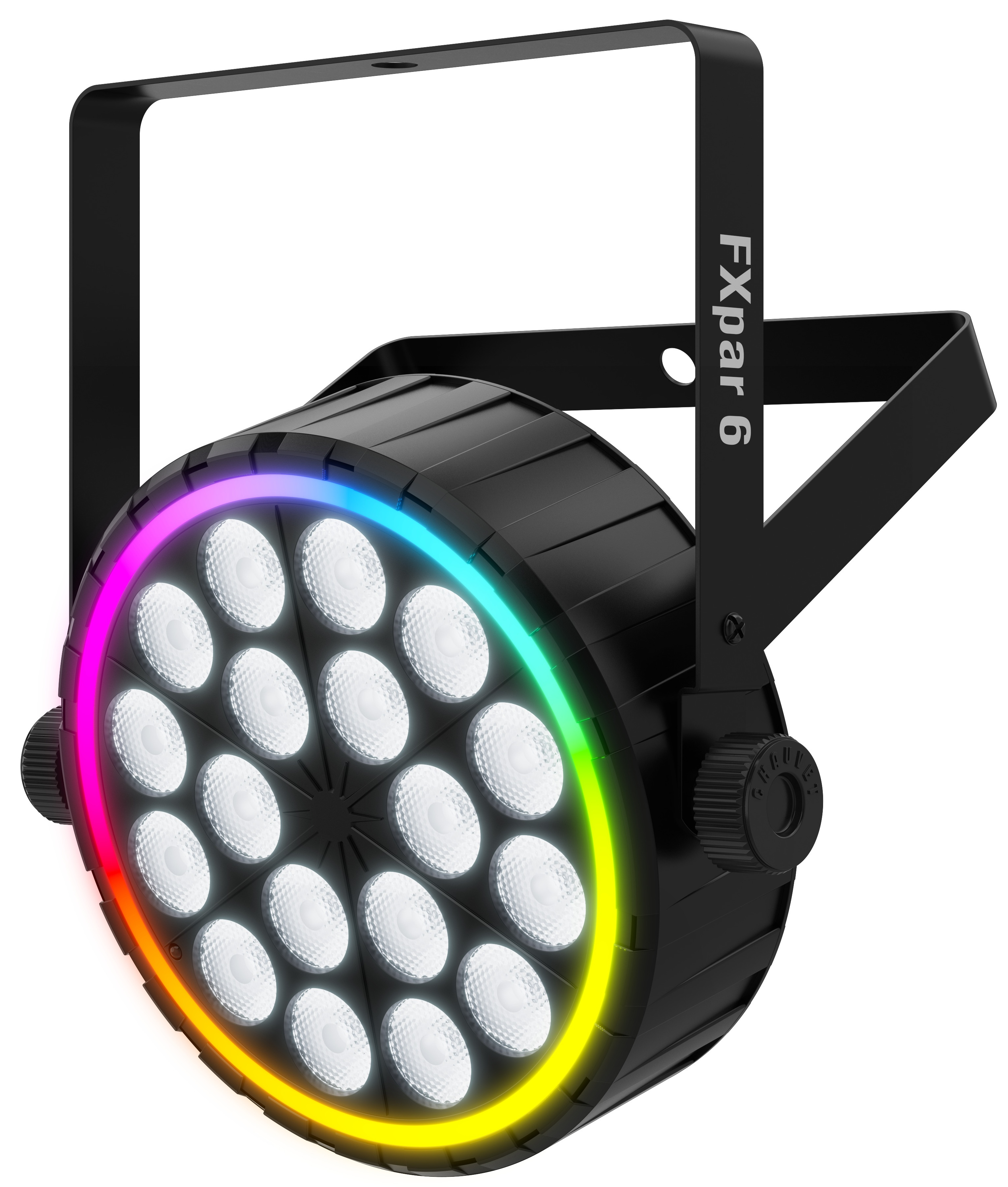 Le Chauvet DJ FX Par 6 repose sur une architecture LED avancée combinant une source wash RGBW et un anneau RGB distinct. Cette conception permet d’obtenir à la fois des aplats de couleur homogènes et des effets circulaires animés, adaptés aux scènes, clubs et prestations mobiles. Les LED offrent une stabilité chromatique et une réponse rapide aux changements de programme.