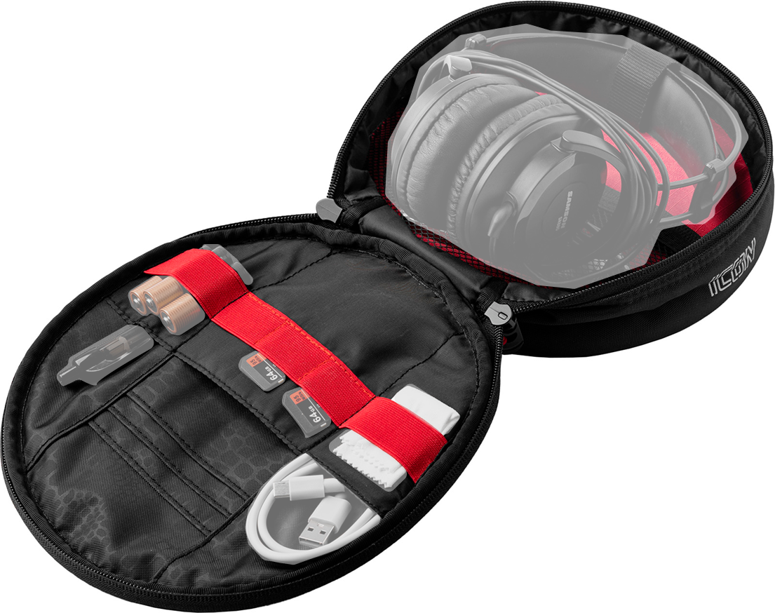 Le sac pour casque ICON Series intègre des solutions de rangement pensées pour les besoins réels des professionnels de l’audio. Les sangles Mil-Spec internes permettent de maintenir des coussinets de rechange, adaptateurs ou petits accessoires sans risque de mouvement. Cette organisation interne limite l’encombrement et facilite l’accès rapide au matériel.