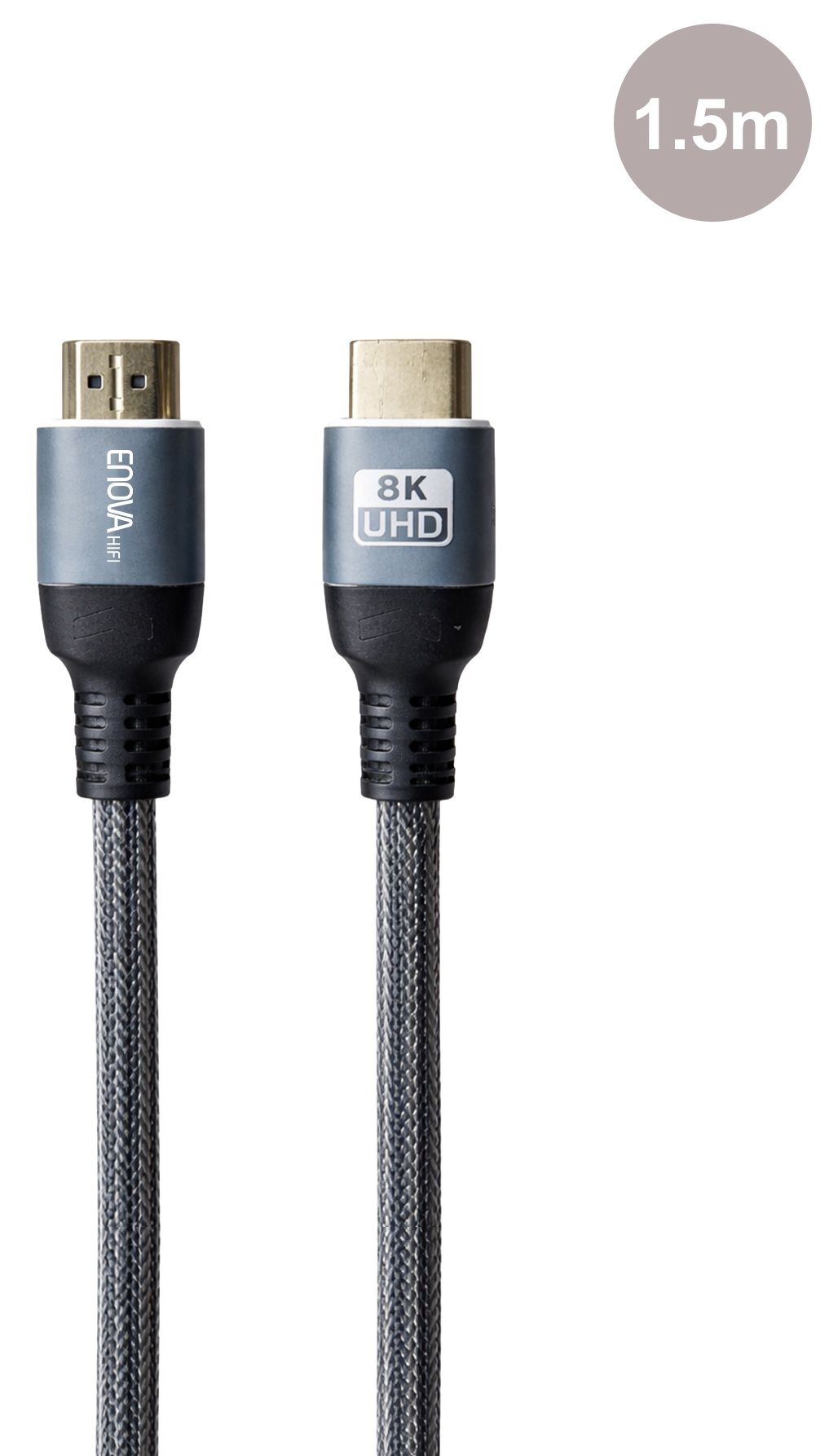 Le câble Enova Hifi GAIA HDMI 1.5M est un câble HDMI 2.1 Ultra High Speed de 1,5 mètres, pensé pour le home cinéma, le gaming nouvelle génération et les équipements professionnels. Sa compatibilité 8K à 60 Hz et 4K à 120 Hz assure une image précise et une fluidité adaptée aux films Ultra HD, aux consoles PS5 et Xbox Series, ou à un PC gaming. Avec un débit jusqu’à 48 Gbps, la transmission reste stable, sans saccades ni perte de qualité sur les contenus exigeants. Il prend en charge le HDR, le VRR et des fonctions HDMI 2.1 comme QMS et QFT, utiles pour réduire les variations et améliorer la réactivité. Sa coque en alliage d’aluminium, ses connecteurs plaqués or 24K et sa gaine tressée renforcent la durabilité.