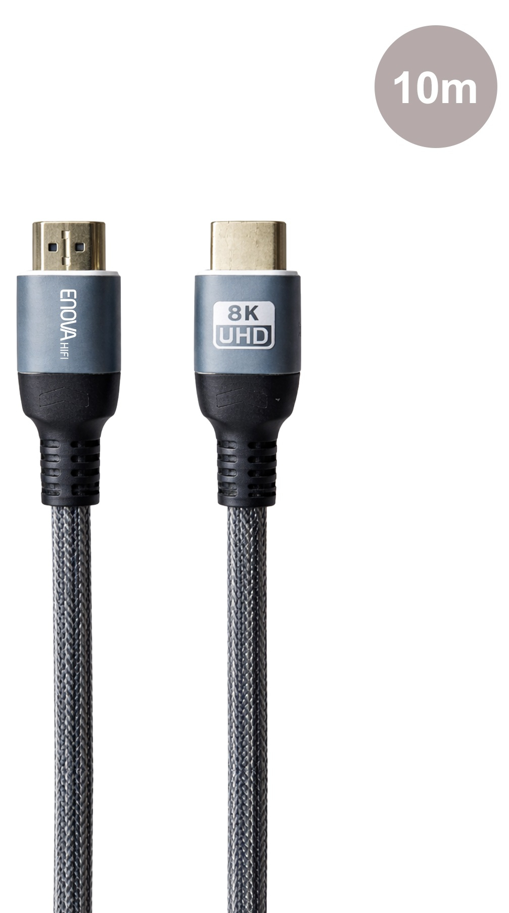 Le Enova Hifi GAIA HDMI 10M est un câble HDMI 2.1 Ultra High Speed de 10 m pensé pour le home cinéma, le gaming nouvelle génération et les équipements professionnels. Compatible 8K@60Hz et 4K@120Hz, il assure une image Ultra HD précise et une fluidité adaptée aux consoles PS5, Xbox Series et aux PC gaming. Son débit jusqu’à 48 Gbps permet une transmission stable, sans latence ni saccades, même sur les contenus exigeants. Il prend en charge le HDR, le VRR et les fonctions HDMI 2.1 QMS et QFT, utiles pour réduire les variations et optimiser la réactivité. Sa fabrication premium associe conducteur en cuivre OFC, connecteurs plaqués or 24K, coque en alliage d’aluminium et gaine tressée résistante, avec compatibilité descendante HDMI 2.0 à 1.1.