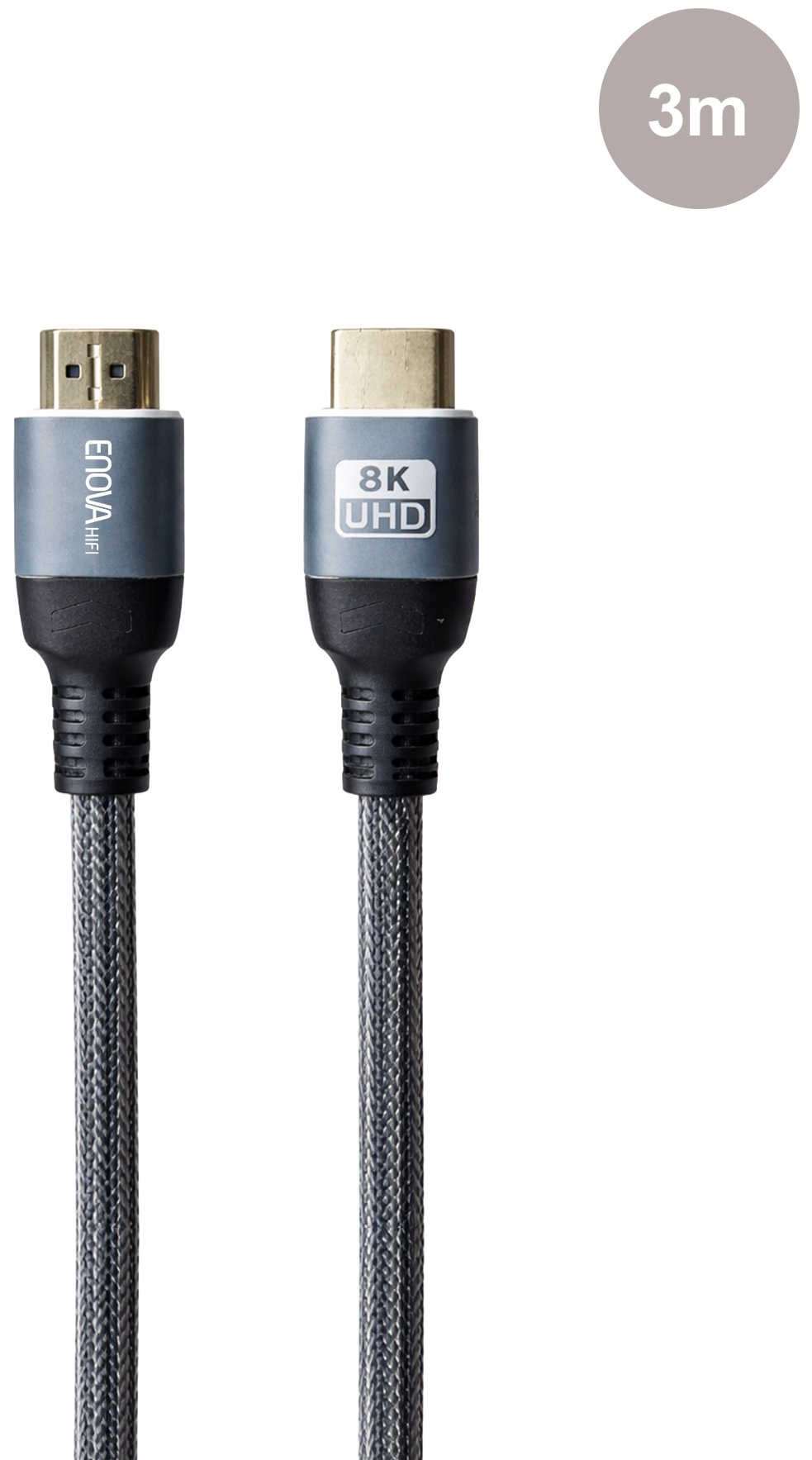 Le Enova Hifi GAIA HDMI 3M est un câble HDMI 2.1 conçu pour les installations home cinéma, le gaming nouvelle génération et les équipements professionnels. Avec sa longueur de 3 m, il facilite le raccordement d’un téléviseur 8K, d’un vidéoprojecteur ou d’un ampli audio-vidéo, tout en conservant une liaison stable. Sa compatibilité 8K@60Hz et 4K@120Hz assure une image précise et une excellente fluidité, adaptée aux films Ultra HD, aux consoles PS5 et Xbox Series, ainsi qu’aux PC gaming. Son débit jusqu’à 48 Gbps prend en charge le HDR, le VRR et les fonctions HDMI 2.1 QMS et QFT pour limiter saccades et latence. La fabrication premium associe cuivre OFC, connecteurs plaqués or 24K, coque aluminium et gaine tressée résistante.