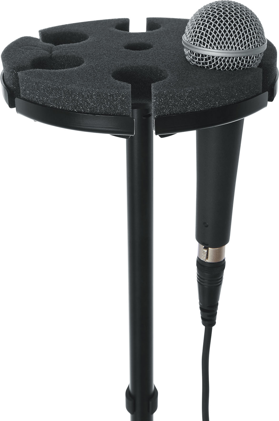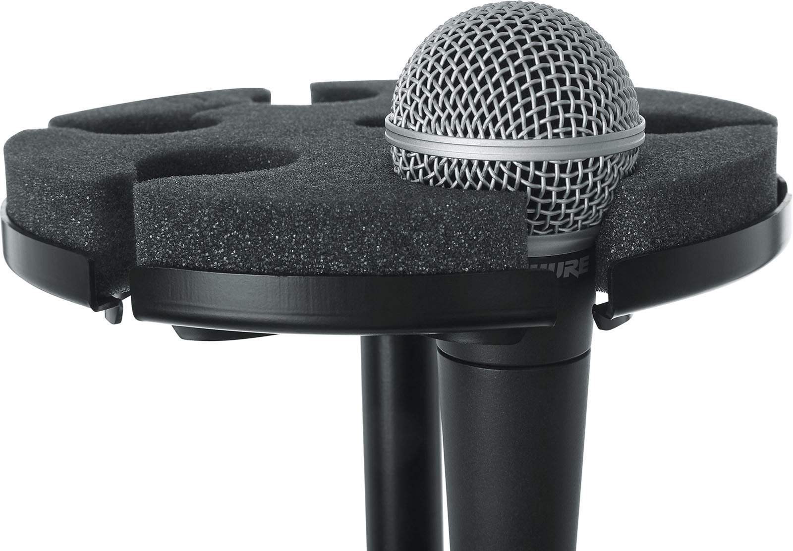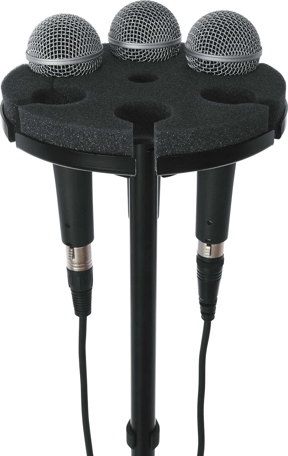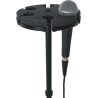Ce support peut accueillir jusqu’à six microphones simultanément. Chaque emplacement est conçu pour maintenir un micro de taille standard, ce qui permet de configurer des captations multipistes de manière simple et ordonnée. Il est idéal pour les studios ou les prestations scéniques.
