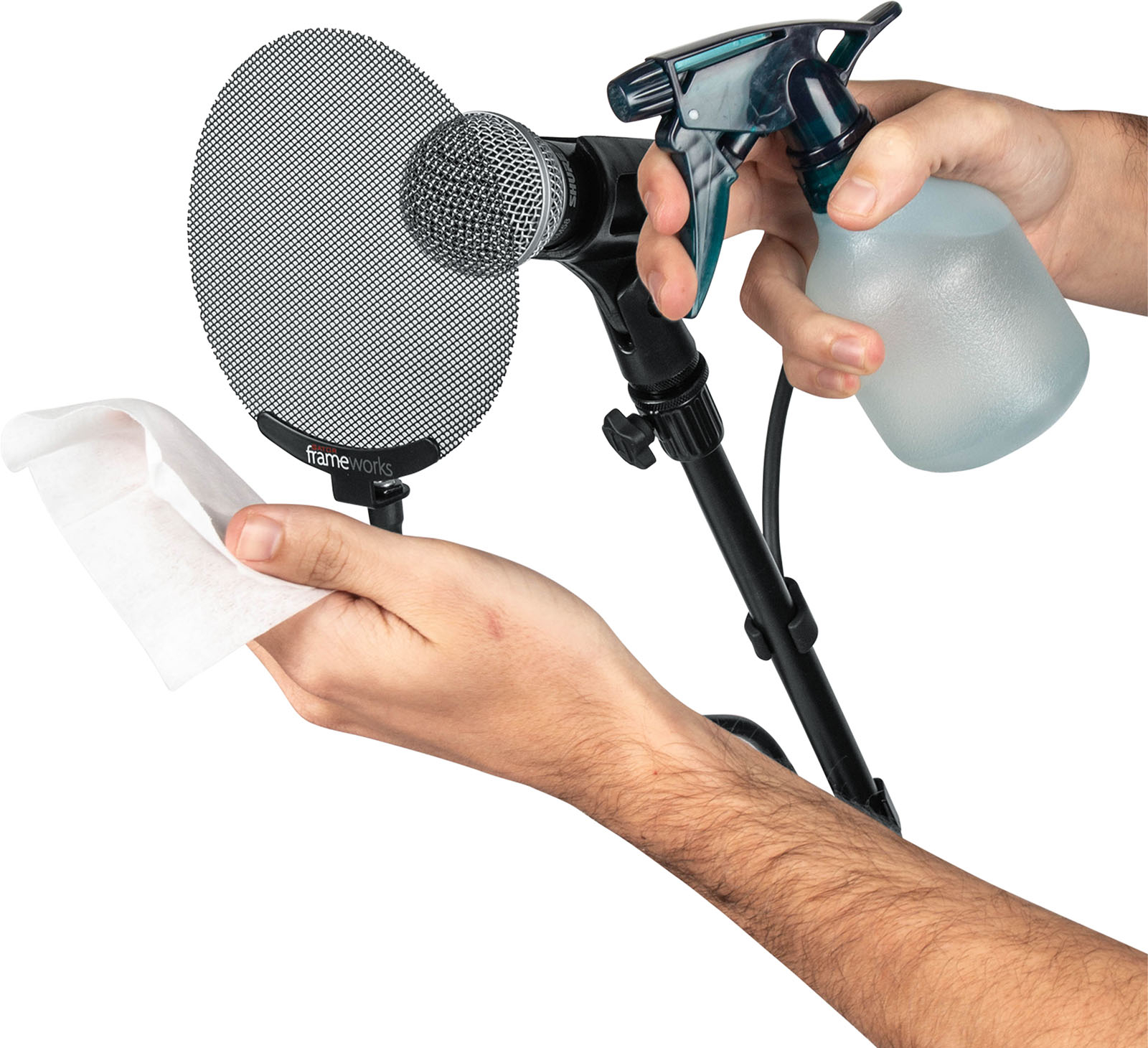 L'installation est simple : fixez la pince du filtre sur un pied de micro, puis ajustez le bras flexible pour positionner la grille face à la capsule du microphone. Aucun outil n’est requis. Assurez-vous que la grille reste à 5 à 10 cm de la bouche pour une efficacité optimale.