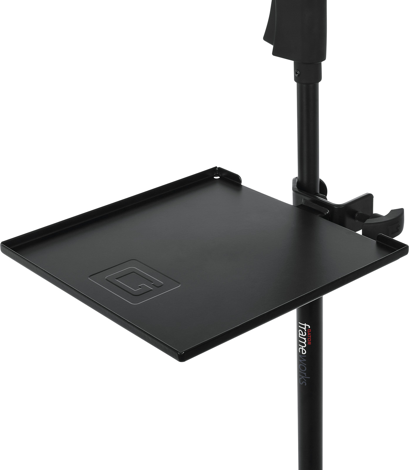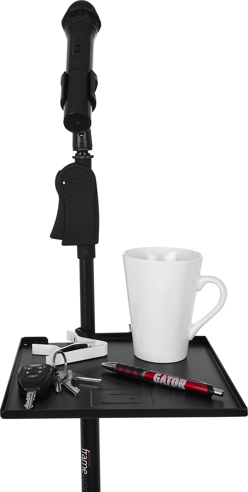 Le GFW-SHELF0909 de Gator Frameworks est un plateau carré spécialement conçu pour être fixé facilement sur un pied de micro. Ce format de 228,60 mm permet d’accueillir divers accessoires tels que tablette, smartphone, interface audio ou petit contrôleur. Son rebord de 33 mm sécurise les objets posés, évitant les glissements en situation live. L’installation ne nécessite aucun outil, ce qui en fait une solution pratique pour les musiciens et techniciens mobiles.