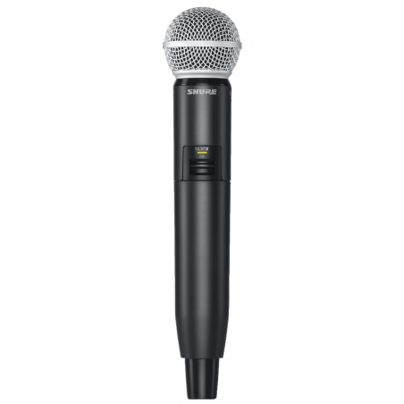 Emetteur main SM58 pour GLX-D+ double-bande. Un récepteur sans fil compatible est nécessaire au fonctionnement.