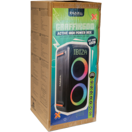 Enceinte lumineuse portable sur batterie Ibiza Sound GRAFFIK600 équipé de 2x haut-parleurs de basses 20cm d'une puissance de 600W