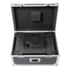Deux flight cases robustes sont inclus pour protéger la base, la colonne centrale, la plateforme de contrôle et les accessoires tels que support ordinateur, câbles et alimentation. Cette solution assure stockage sécurisé et longévité du matériel lors de déplacements fréquents.