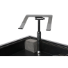 Deux fixations filetées 3/8" permettent d’installer un ou deux ordinateurs portables, un contrôleur Wolfmix, une enceinte monitoring ou un pied microphone. Le support ordinateur inclus est réglable en hauteur, inclinaison et rotation, et peut être positionné à gauche ou à droite selon l’ergonomie souhaitée.