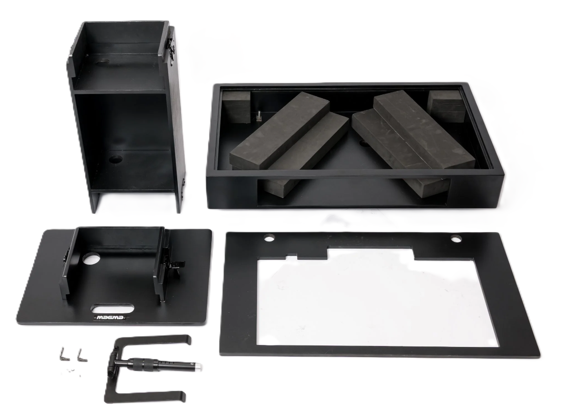 L’installation commence par l’assemblage de la base et de la colonne centrale, suivie de la fixation de la plateforme de contrôle. Les éléments s’ajustent rapidement grâce à une conception pensée pour le montage régulier. Les passe-câbles permettent ensuite de guider alimentation et liaisons audio vers la base.