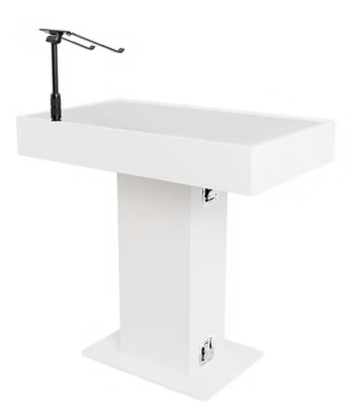 Les passe-câbles pré-percés sur la plateforme, les étagères centrales et le capot de contrôle facilitent un routage propre des câbles. Les lignes d’alimentation et audio passent discrètement du contrôleur vers la base, garantissant une installation nette et structurée.