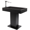 Le booth DJ MAGMA GROOVE TERMINAL Generic repose sur une structure en contreplaqué d’eucalyptus de 15 mm garantissant rigidité et stabilité. Cette conception assure un maintien fiable du contrôleur DJ, des accessoires et des équipements rack installés sous le plateau principal. La finition noir mat texturée renforce la résistance aux usages intensifs tout en s’intégrant dans des environnements événementiels, bars ou studios.
