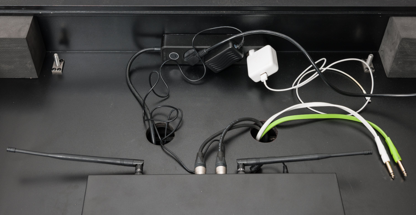 Le GROOVE TERMINAL Generic intègre des passages de câbles pré-percés sur la plateforme de contrôle, les étagères centrales et le cache supérieur. Cette solution permet de faire circuler les câbles d’alimentation et audio du contrôleur vers la base sans visibilité apparente. L’installation gagne en clarté et en sécurité, notamment lors de prestations événementielles.