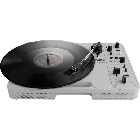 La Korg Handytraxx Play est une platine vinyle portable révolutionnaire, compacte (370 x 280 x 84 mm) et légère (2,3 kg), idéale pour les DJ et amateurs de vinyles. Avec un entraînement par courroie, des vitesses 33/45/78 tours et un fader optimisé pour le scratch, elle garantit des performances précises et fluides. Dotée d’un looper intégré, d’effets numériques (DJ, EQ, Wah, délai) et de haut-parleurs 2,5 W, elle offre une créativité sans limites. Compatible avec cellules céramiques/MM et équipée de sorties RCA et casque, elle combine portabilité, innovation et connectivité.