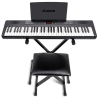 Ce pack tout-en-un inclut les accessoires essentiels pour une pratique confortable et régulière. Le stand stable, équipé de lanières pour sécuriser le clavier, aide à conserver une position de jeu cohérente. La banquette réglable en hauteur s’adapte à la morphologie, la pédale de sustain permet de travailler l’expressivité, et le casque autorise une pratique discrète lorsque l’environnement exige du silence. Le pupitre plein accueille partitions et tablette pour suivre une méthode ou des exercices.