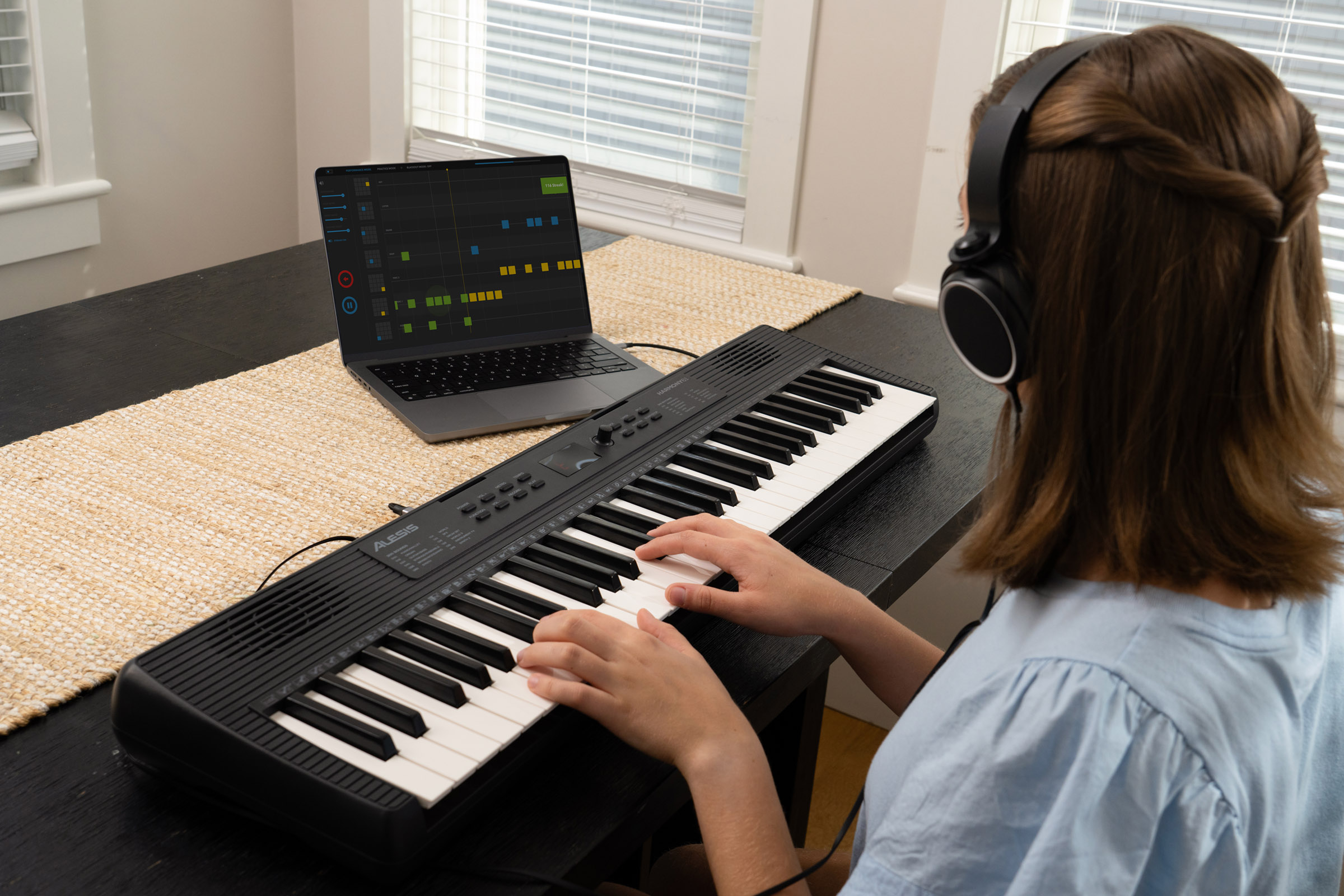 Le Alesis Harmony 61 MK4 inclut l’accès à des cours de piano en ligne avec Skoove et Melodics. Pour un débutant, l’intérêt est de suivre des leçons interactives adaptées au niveau, avec un suivi progressif. Cette approche structure les séances, propose des objectifs clairs et aide à maintenir la motivation, notamment lorsque l’on apprend à la maison sans professeur.