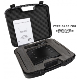 Le HF-TWIN RECEIVER est logé dans une valise en plastique résistante, offrant une protection fiable et un transport facile. Vous pouvez facilement emporter votre équipement partout où vous allez, que ce soit pour des performances sur scène, des événements en extérieur ou des présentations professionnelles.