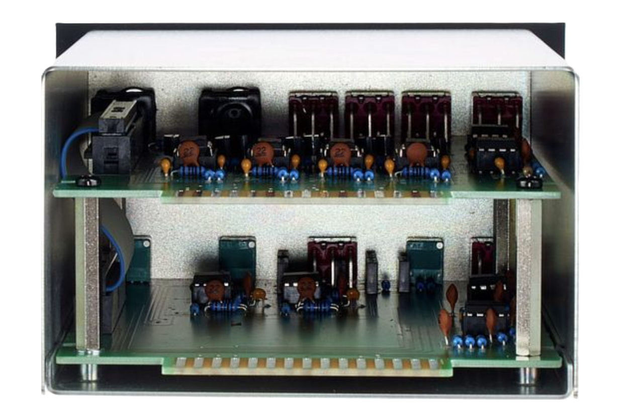 L’étage de sortie du HPm est conçu en push-pull Class AB, avec transistors bipolaires couplés thermiquement. Cette configuration assure un gain élevé et une stabilité thermique idéale, garantissant une restitution cohérente et sans distorsion.